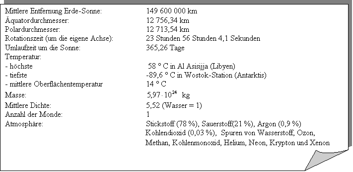 Technische Daten der Erde (ca.-Werte):