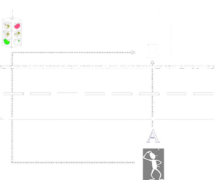 Ampel gehen, die aber ziemlich weit von unserem Standpunkt A entfernt ist.