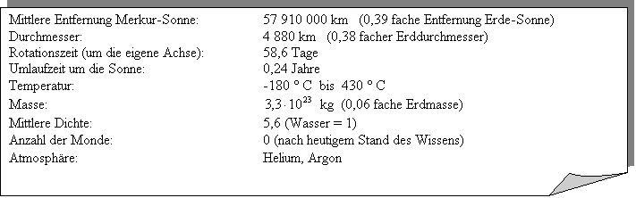 Technische Daten des Merkur (ca.-Werte):