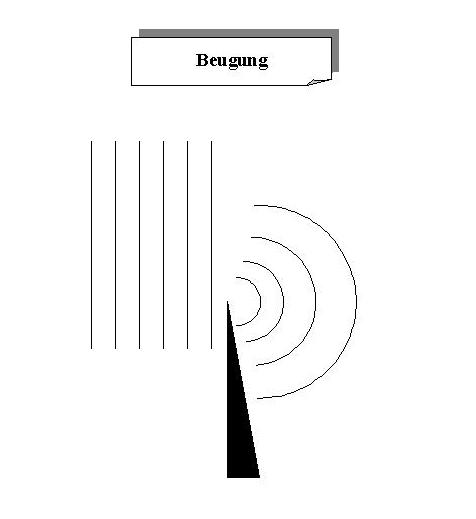 Die einlaufende ebene Welle wird an der scharfen Kante gebeugt.