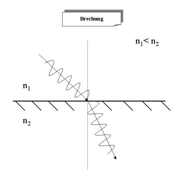 Das Licht wird beim übergang vom dünneren Medium (Brechungsindex n